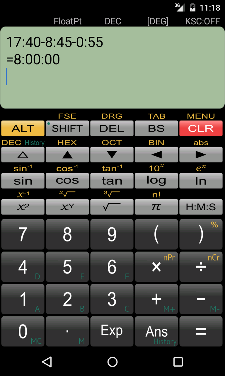 新バージョンでは、従来のDEG/DMSキーに代わり、新たに°'”キーを採用しました。これにより、度分秒←→数値の変換や時刻の足し算、引き算が容易に行えます。また、設定を変更することで°'”キーをH:M:Sキーに変更することができ、直感的な時刻の計算を行えます。